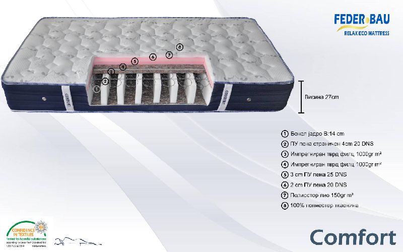 Мисијата на Федер Бау е да овозможи незаборавни и пријатни моменти во сечиј живот а тоа го постигнува со производството на професионалните душеци. Ако не се чувстувате среќни со користењето на вашиот душек, дајте ни можност да Ви помогнеме и да се обидеме да ја вратиме вашата среќа. Тоа што ги прави поразлични нашите производи од останатите производи на пазарот се неколку карактеристики од материалите кој дават удобност, природност и целосна опуштеност.