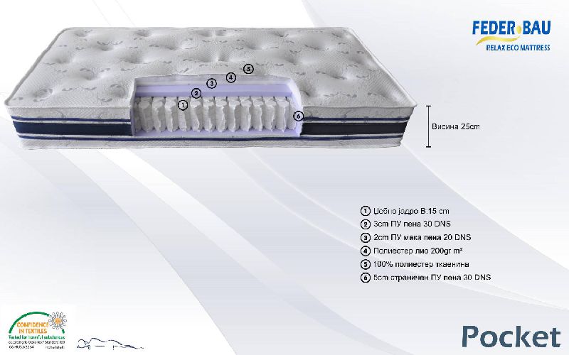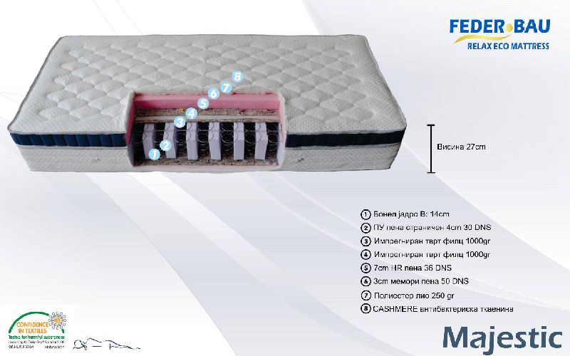 Мисијата на Федер Бау е да овозможи незаборавни и пријатни моменти во сечиј живот а тоа го постигнува со производството на професионалните душеци. Ако не се чувстувате среќни со користењето на вашиот душек, дајте ни можност да Ви помогнеме и да се обидеме да ја вратиме вашата среќа. Тоа што ги прави поразлични нашите производи од останатите производи на пазарот се неколку карактеристики од материалите кој дават удобност, природност и целосна опуштеност.